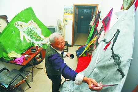 康大爷说,制作完成一个风筝最快需要10天,有的甚至要花上一个月。记者看到,康大爷房间里最大的风筝长约4米,宽约1.7米。满屋子的风筝都是康大爷的宝贝,而最让他高兴的,是自己的风筝能飞上天空。